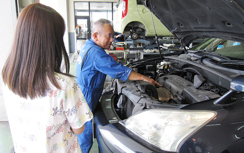 車検基本点検及び日常点検等を行い、お客様に立会いでご納得頂けるようご説明致します。国家資格の整備士が点検内容を直接説明しますので安心です!